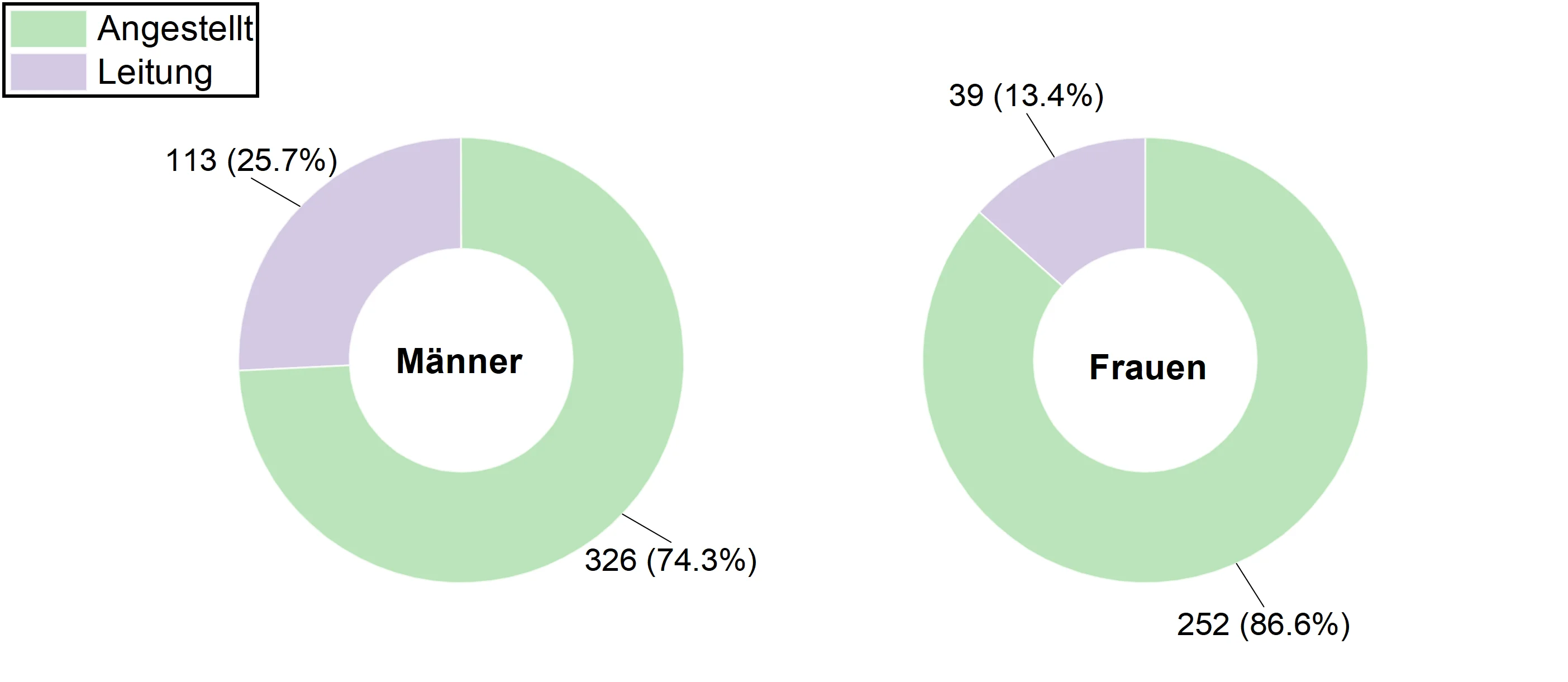 Über die Gründe für die beobachteten Gehaltsunterschiede zwischen Männern und Frauen kann an dieser Stelle nur spekuliert werden. Mögliche Gründe können ein geringerer Anteil von selbständig tätigen Frauen (s. Abb. 11) und weniger Frauen in Führungspositionen (s. Abb. 12) unter den Befragten sein. Da sich die größten Unterschiede bei Berufseinsteigern abzeichnen (s. Abb. 9), ist auch das in den Studien von Kirsten Wüst et al. und Martina Vogt et al. insbesondere beim Berufseinstieg beobachtete defensivere Verhandlungsverhalten von Frauen denkbar. Zudem ist der Anteil der Berufseinsteiger (0-5 Jahre Berufserfahrung) in der Studienpopulation bei Frauen deutlich höher als bei den Männern (43% vs. 27%, s. Abb. 9), sodass dies die extremen Unterschiede in der Gesamtverteilung (Abb. 8) etwas relativiert.